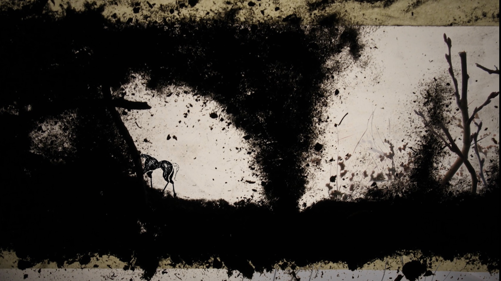 Apart from being part of the production team of our Western short Johnny Unsaddled I also created a stop-motion sequence. On a homemade light table I animated the environment with dried earth, paper-cutouts and pieces of cotton wool balls. Johnny himself was created in lots of handdrawn frames, thus creating several walking circles. The full composition came to life in After Effects.